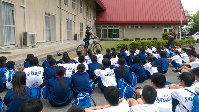 ヘルメットは必ず着用です。 三中の自転車通学と同じですね。